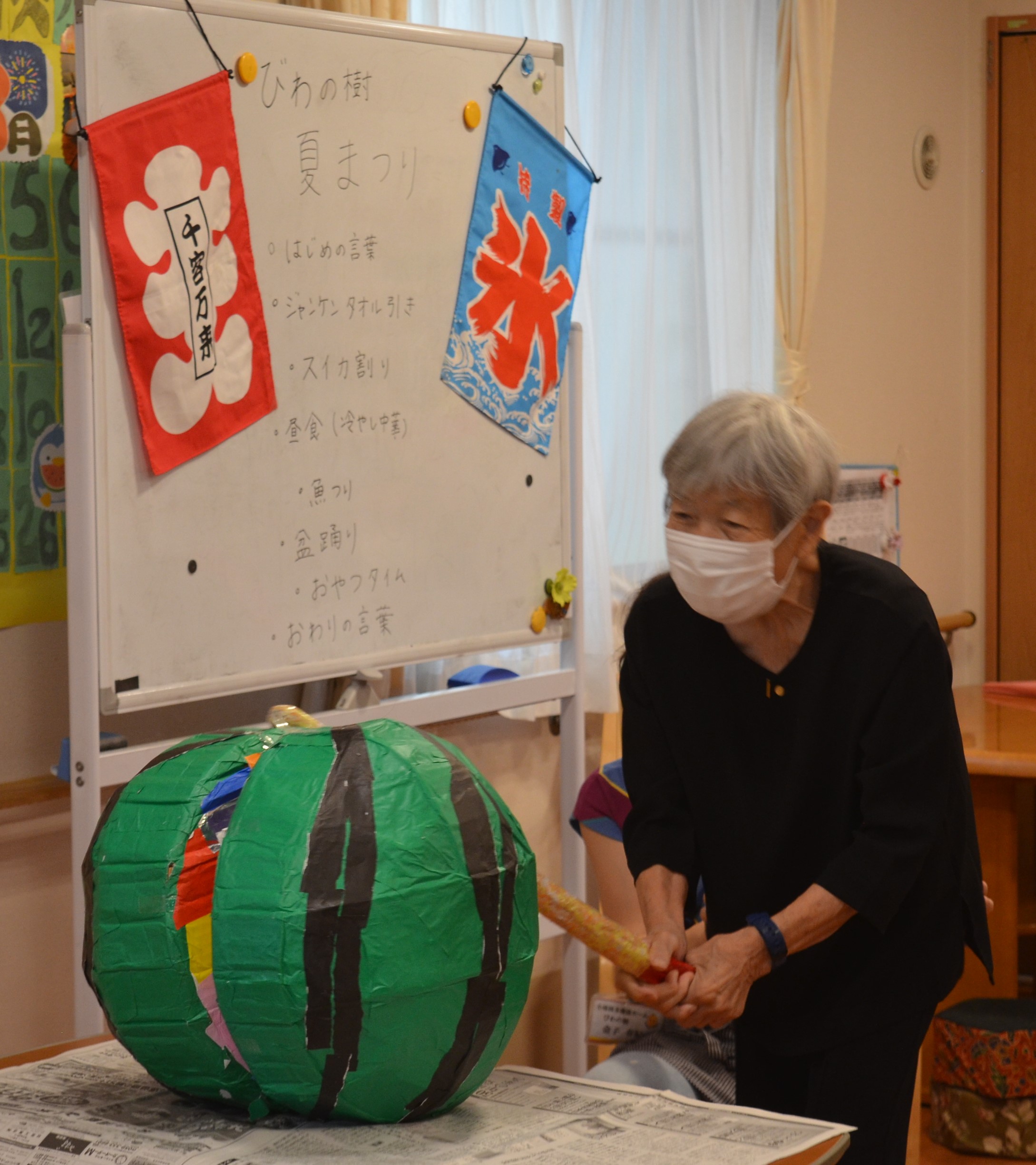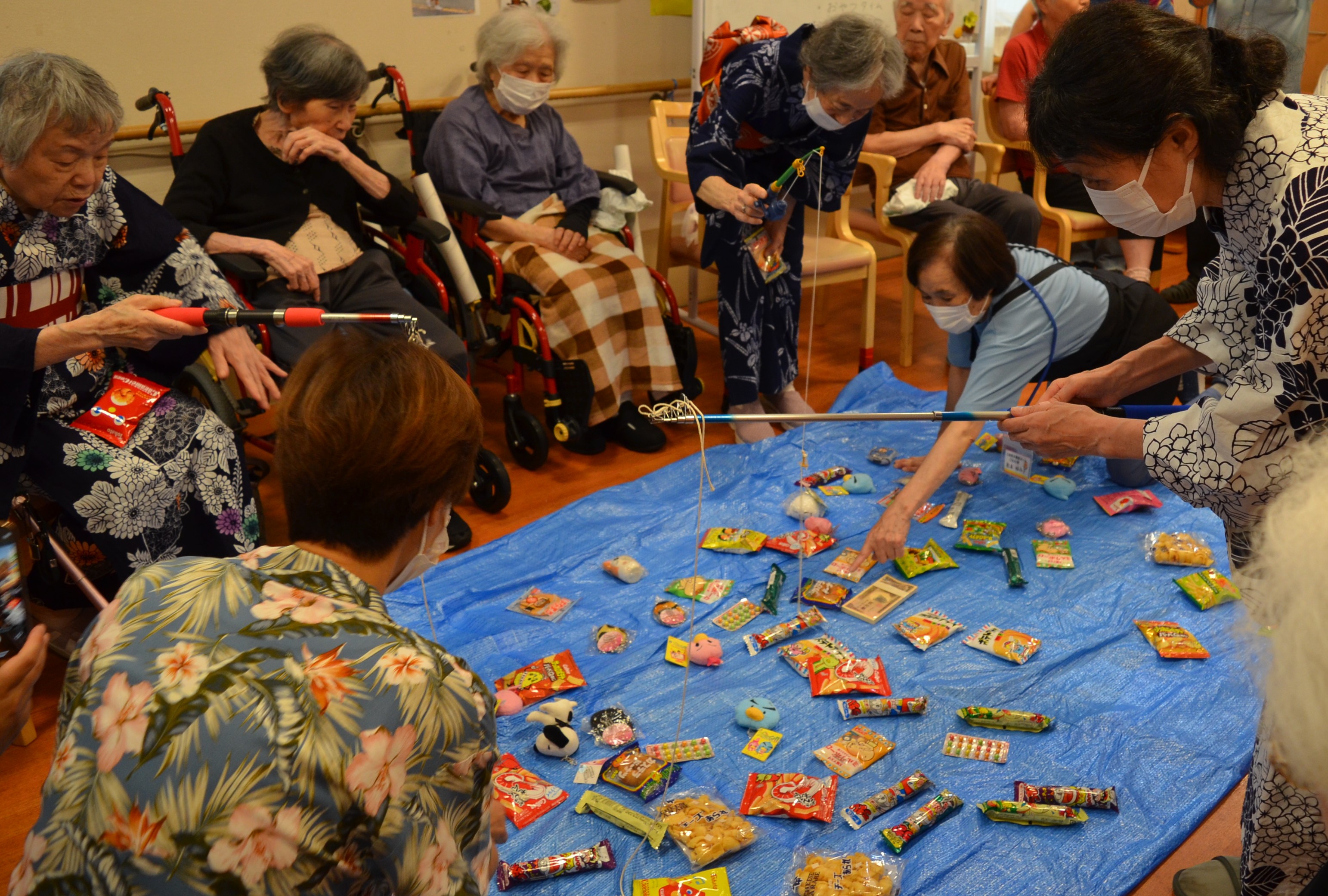ご希望の方には浴衣の着付けを行い、すいか割りや魚釣りなど盛りだくさんの一日となりました